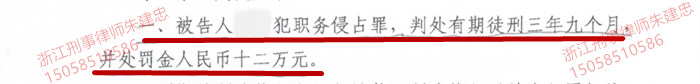 某某职务侵占罪,侵占金额600余万(350+280以上),代理该案件中,接见当事人近20次,被害人单位跑了近10次,最终取得被害人单位谅解。 该案在没有自首和立功的情况下,最终判处3年9个月,罚金12万,为当事人争取到了合法权益。 办理案件过程中,为当事人附带解决了资金链的问题,挽回损失至少200万以上。 职务侵占罪2024年以来明显增多,特别是对上市公司的保护明显力度加大!这和国家保护民营经济的决策密不可分,民营公司上班喜欢拿回扣的,风险不断加大! 办案人:朱建忠 浙江婺博律师事务所 2025.2.7