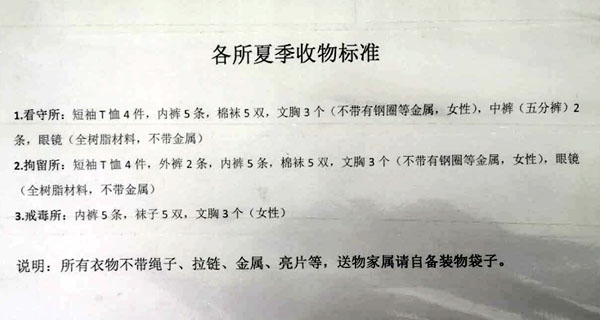 金华看守所以及任何看守所食品一律谢绝接收,送衣物和生活零钱可以按照以下标准通过邮政快递和邮政储蓄银行为当事人寄送。
