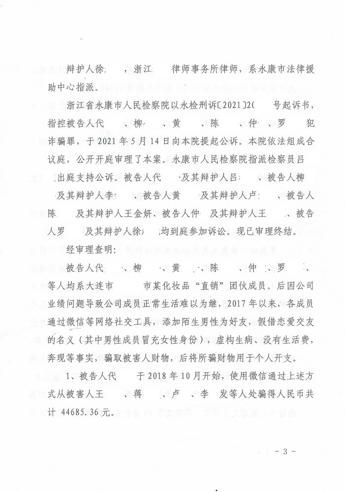 金华市一起网络交友诈骗案件,当事人陈某是诈骗团伙中的一个寝室长,检察官本要以共同犯罪追究责任,当事人要对其手下的所有寝室成员的诈骗数额负责。律师通过提供相似判例、分析案情、与检察官沟通等辩护方式作出努力,最后检察官按个人诈骗提起公诉,当事人适用了缓刑。