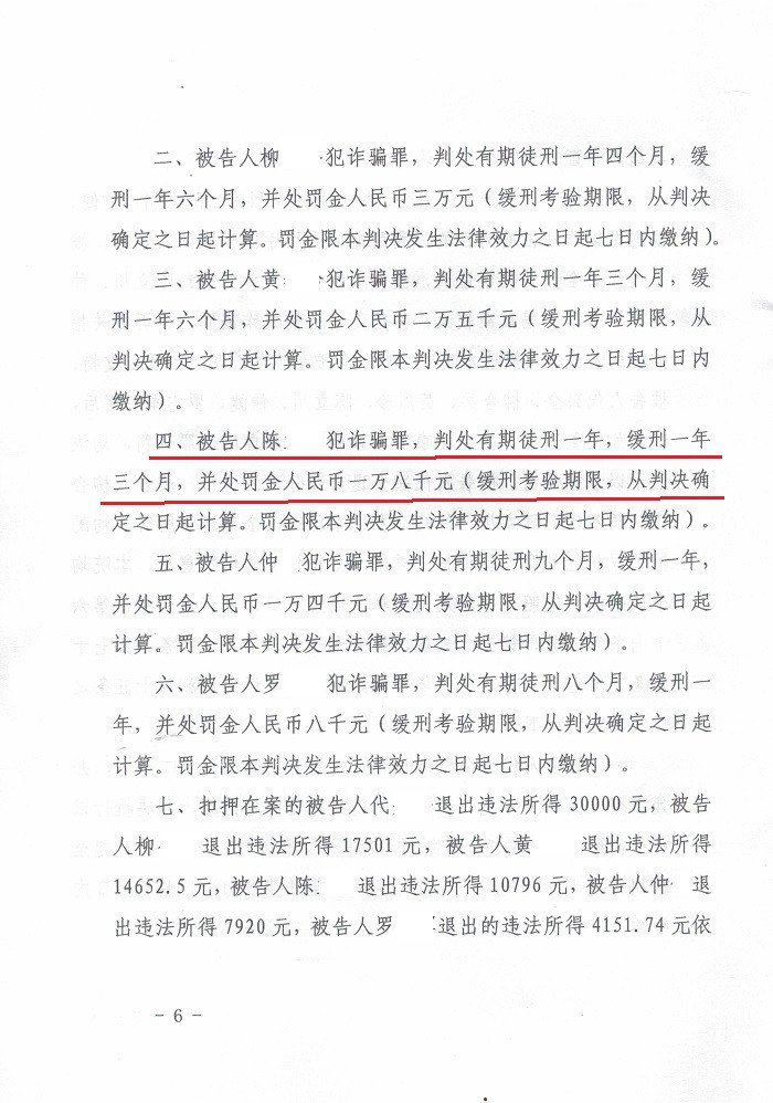陈某网恋交友诈骗一案判处缓刑