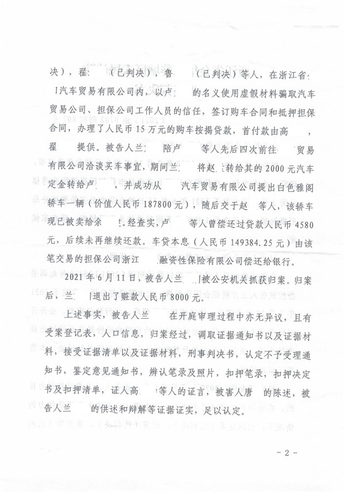 兰某合同诈骗一案判处缓刑